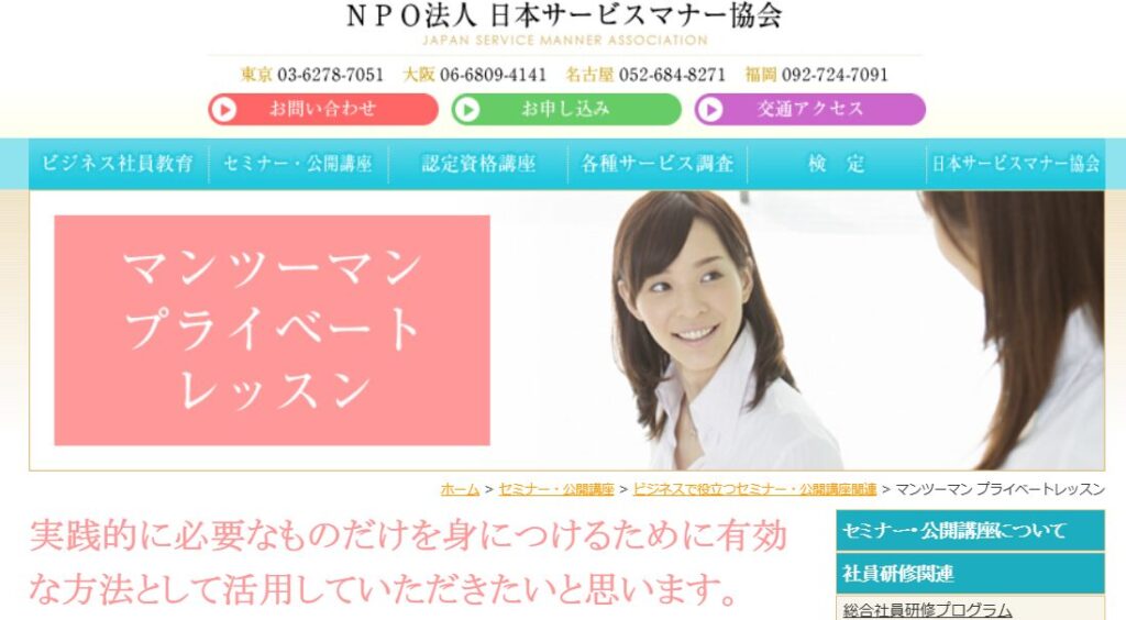 日本サービスマナー協会 マンツーマン プライベートレッスン