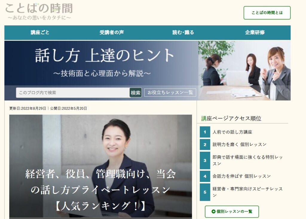 - マンツーマン個別指導中心の話し方教室。