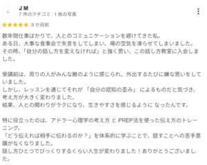 あたまの話し方教室横浜本店の満足度は、Googleレビューではオール5つ星評価、まなびのマーケット「ストアカ」では、84件の平均レビューが4.9と非常に高い満足度です。